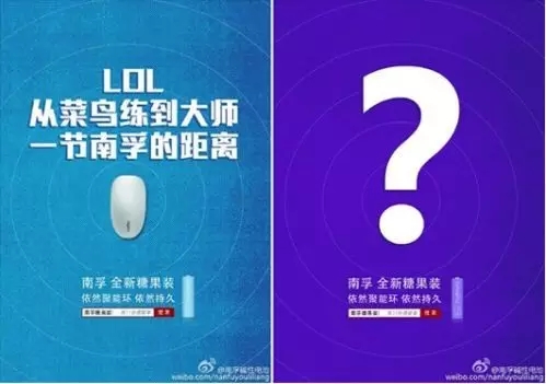 2015年,南孚電池官微發(fā)布了一系列糖果裝電池海報,主題是#雖然漂亮,但不簡單# 創(chuàng)意無限,懸念叢生,頗引人關注。