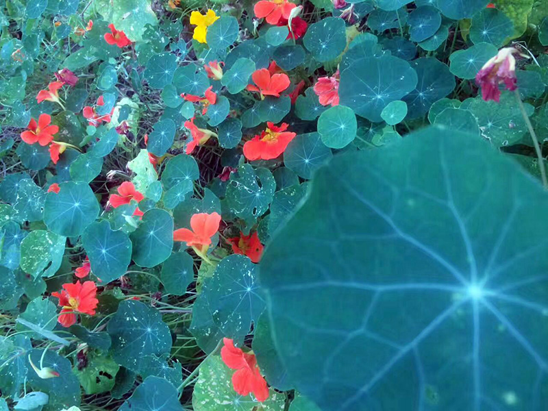 園主老趙給每位小伙伴泡了一杯天竺葵茶喝,味道棒極了。參觀大棚時,老趙給我們講解了大棚中所種植的各種鮮花、蔬果的品種及用途。還給我們品嘗了植物芥末,那刺激爽呆了。
